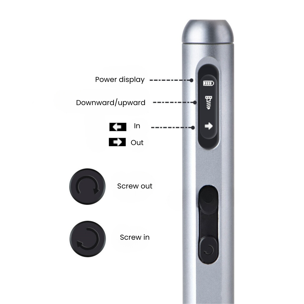 Experience convenience with a sleek, modern, and minimalist screwdriver design that opens with a simple press of the top and a built-in switch.